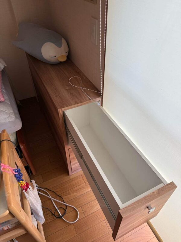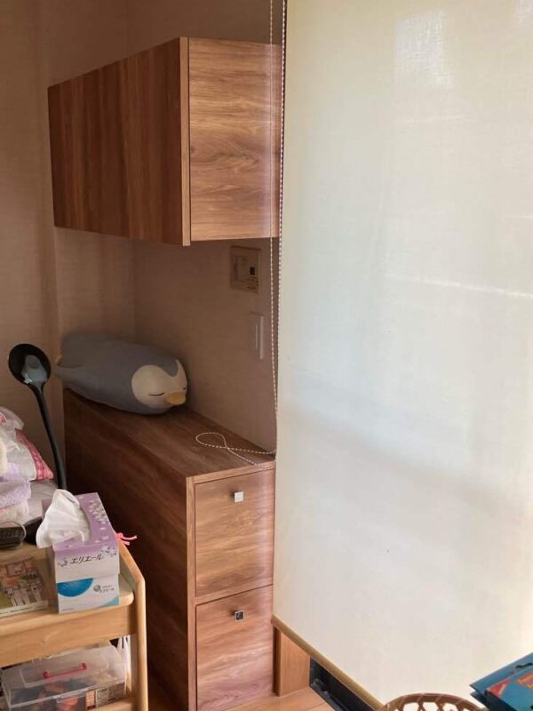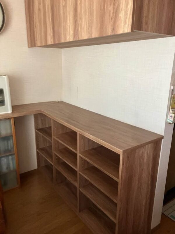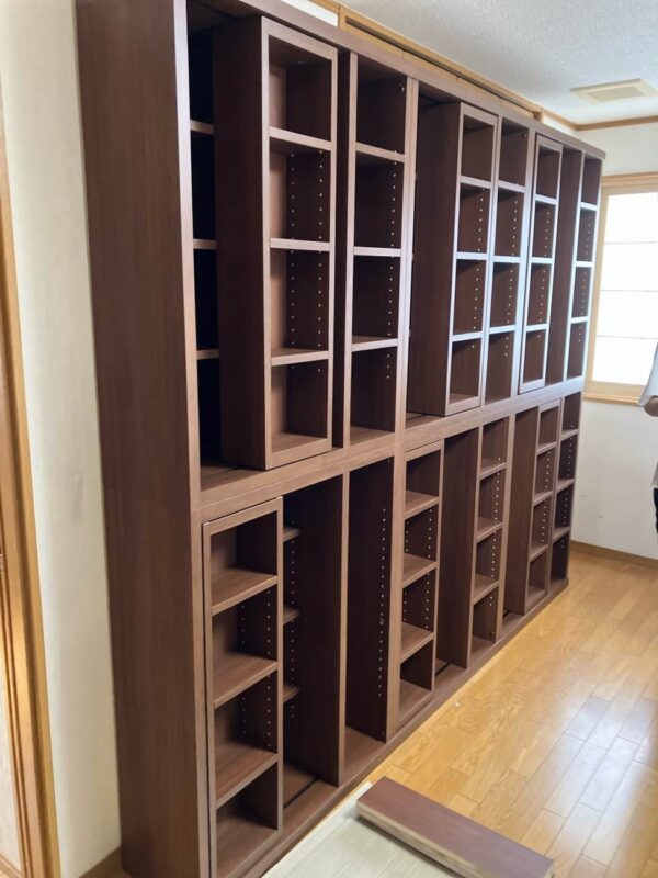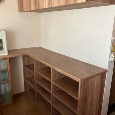 たくさんの本を収納できる造作本棚を設置しました。本のサイズに合わせて作成し、素材やカラーは既存家具に合わせて統一感をもたせました。