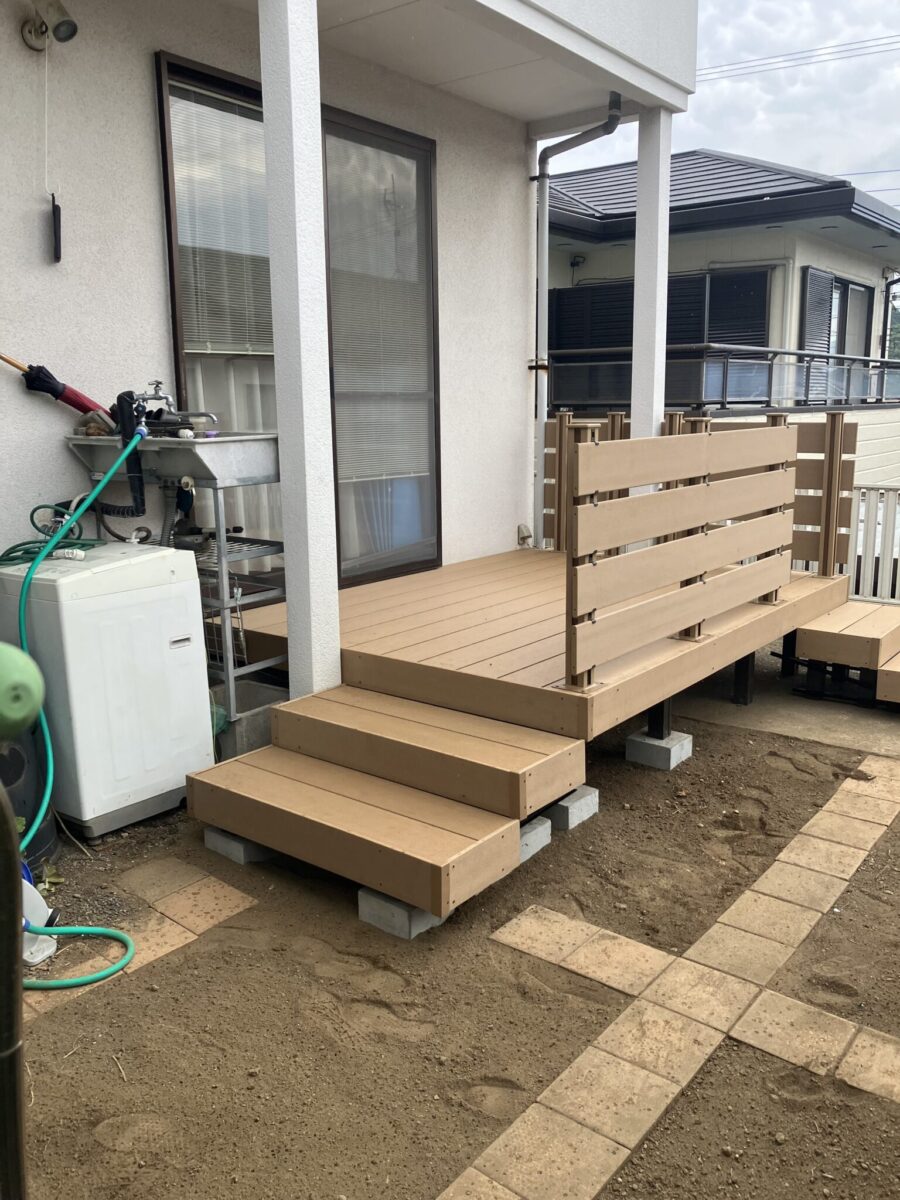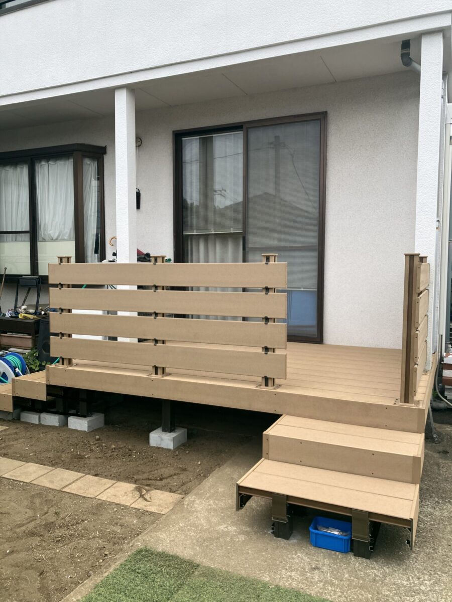 老朽化していたウッドデッキを安全で快適に過ごせる空間へとリフォームしました。耐久性の高い人工木材を採用、メンテナンスをの手間を減らして木のぬくもりを感じられるナチュラルな仕上がりになりました。デッキでくつろぎおうち時間も楽しめます。